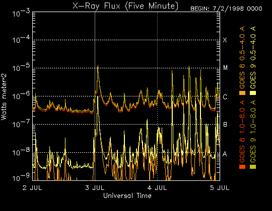 De operationele data in de bovenstaande grafiek werd aangepast om de schaalfactor te verwijderen die werd toegepast door het Space Weather Prediction Center (SWPC). Vanwege de SWPC-schaalfactor in de operationele data werden de zonnevlammen 42% kleiner gerapporteerd dan deze in de wetenschappelijke data. De schaalfactor werd ook verwijderd uit de lijst met zonnevlammen om de werkelijke fysieke eenheden weer te geven.