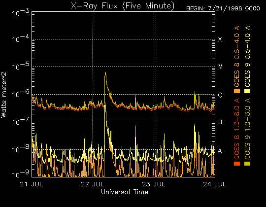 De operationele data in de bovenstaande grafiek werd aangepast om de schaalfactor te verwijderen die werd toegepast door het Space Weather Prediction Center (SWPC). Vanwege de SWPC-schaalfactor in de operationele data werden de zonnevlammen 42% kleiner gerapporteerd dan deze in de wetenschappelijke data. De schaalfactor werd ook verwijderd uit de lijst met zonnevlammen om de werkelijke fysieke eenheden weer te geven.