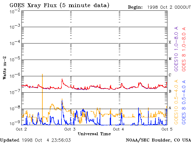 De operationele data in de bovenstaande grafiek werd aangepast om de schaalfactor te verwijderen die werd toegepast door het Space Weather Prediction Center (SWPC). Vanwege de SWPC-schaalfactor in de operationele data werden de zonnevlammen 42% kleiner gerapporteerd dan deze in de wetenschappelijke data. De schaalfactor werd ook verwijderd uit de lijst met zonnevlammen om de werkelijke fysieke eenheden weer te geven.