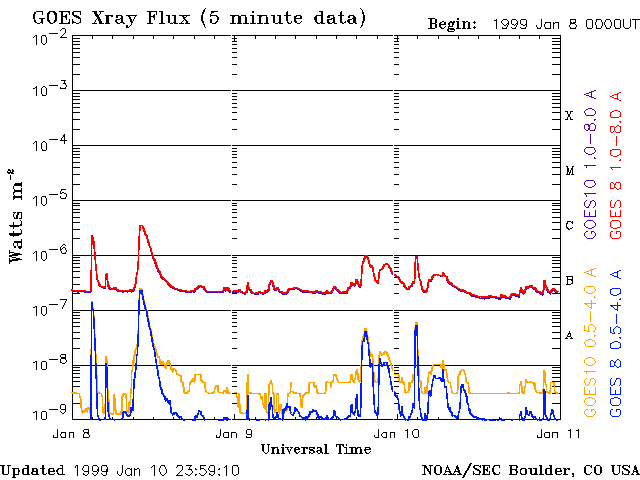 De operationele data in de bovenstaande grafiek werd aangepast om de schaalfactor te verwijderen die werd toegepast door het Space Weather Prediction Center (SWPC). Vanwege de SWPC-schaalfactor in de operationele data werden de zonnevlammen 42% kleiner gerapporteerd dan deze in de wetenschappelijke data. De schaalfactor werd ook verwijderd uit de lijst met zonnevlammen om de werkelijke fysieke eenheden weer te geven.