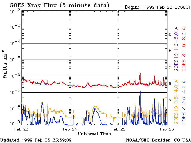 De operationele data in de bovenstaande grafiek werd aangepast om de schaalfactor te verwijderen die werd toegepast door het Space Weather Prediction Center (SWPC). Vanwege de SWPC-schaalfactor in de operationele data werden de zonnevlammen 42% kleiner gerapporteerd dan deze in de wetenschappelijke data. De schaalfactor werd ook verwijderd uit de lijst met zonnevlammen om de werkelijke fysieke eenheden weer te geven.