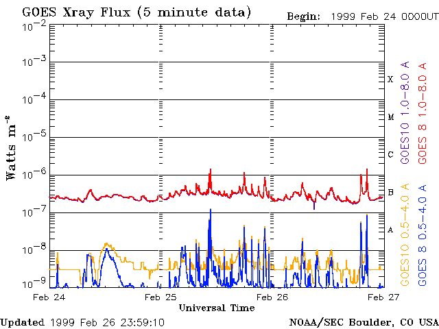De operationele data in de bovenstaande grafiek werd aangepast om de schaalfactor te verwijderen die werd toegepast door het Space Weather Prediction Center (SWPC). Vanwege de SWPC-schaalfactor in de operationele data werden de zonnevlammen 42% kleiner gerapporteerd dan deze in de wetenschappelijke data. De schaalfactor werd ook verwijderd uit de lijst met zonnevlammen om de werkelijke fysieke eenheden weer te geven.