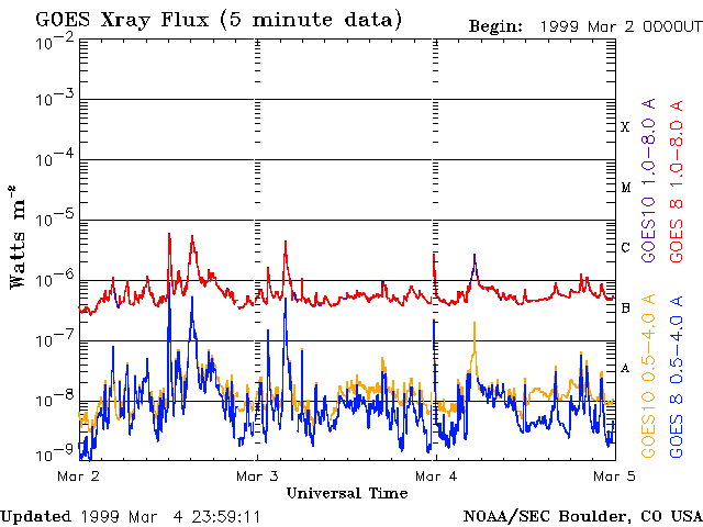 De operationele data in de bovenstaande grafiek werd aangepast om de schaalfactor te verwijderen die werd toegepast door het Space Weather Prediction Center (SWPC). Vanwege de SWPC-schaalfactor in de operationele data werden de zonnevlammen 42% kleiner gerapporteerd dan deze in de wetenschappelijke data. De schaalfactor werd ook verwijderd uit de lijst met zonnevlammen om de werkelijke fysieke eenheden weer te geven.
