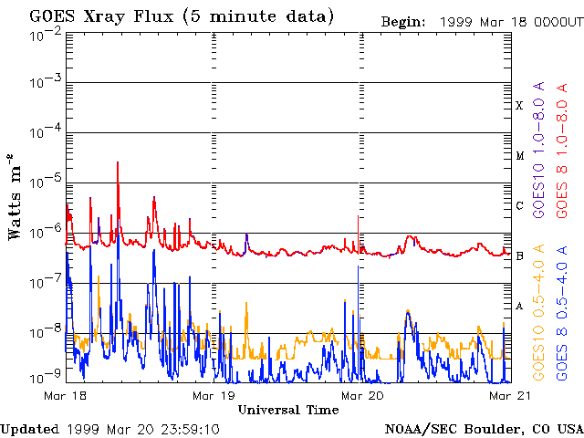 De operationele data in de bovenstaande grafiek werd aangepast om de schaalfactor te verwijderen die werd toegepast door het Space Weather Prediction Center (SWPC). Vanwege de SWPC-schaalfactor in de operationele data werden de zonnevlammen 42% kleiner gerapporteerd dan deze in de wetenschappelijke data. De schaalfactor werd ook verwijderd uit de lijst met zonnevlammen om de werkelijke fysieke eenheden weer te geven.