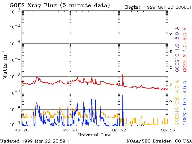 De operationele data in de bovenstaande grafiek werd aangepast om de schaalfactor te verwijderen die werd toegepast door het Space Weather Prediction Center (SWPC). Vanwege de SWPC-schaalfactor in de operationele data werden de zonnevlammen 42% kleiner gerapporteerd dan deze in de wetenschappelijke data. De schaalfactor werd ook verwijderd uit de lijst met zonnevlammen om de werkelijke fysieke eenheden weer te geven.