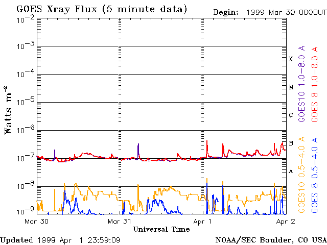 De operationele data in de bovenstaande grafiek werd aangepast om de schaalfactor te verwijderen die werd toegepast door het Space Weather Prediction Center (SWPC). Vanwege de SWPC-schaalfactor in de operationele data werden de zonnevlammen 42% kleiner gerapporteerd dan deze in de wetenschappelijke data. De schaalfactor werd ook verwijderd uit de lijst met zonnevlammen om de werkelijke fysieke eenheden weer te geven.
