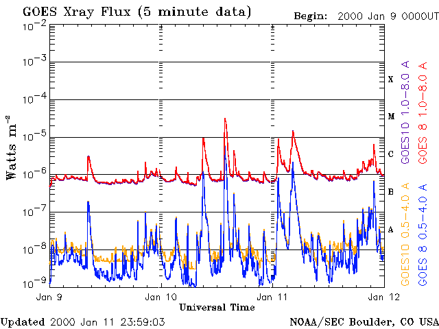 De operationele data in de bovenstaande grafiek werd aangepast om de schaalfactor te verwijderen die werd toegepast door het Space Weather Prediction Center (SWPC). Vanwege de SWPC-schaalfactor in de operationele data werden de zonnevlammen 42% kleiner gerapporteerd dan deze in de wetenschappelijke data. De schaalfactor werd ook verwijderd uit de lijst met zonnevlammen om de werkelijke fysieke eenheden weer te geven.
