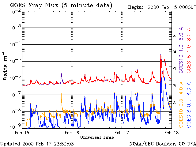 De operationele data in de bovenstaande grafiek werd aangepast om de schaalfactor te verwijderen die werd toegepast door het Space Weather Prediction Center (SWPC). Vanwege de SWPC-schaalfactor in de operationele data werden de zonnevlammen 42% kleiner gerapporteerd dan deze in de wetenschappelijke data. De schaalfactor werd ook verwijderd uit de lijst met zonnevlammen om de werkelijke fysieke eenheden weer te geven.