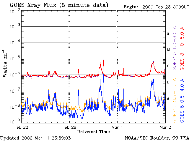 De operationele data in de bovenstaande grafiek werd aangepast om de schaalfactor te verwijderen die werd toegepast door het Space Weather Prediction Center (SWPC). Vanwege de SWPC-schaalfactor in de operationele data werden de zonnevlammen 42% kleiner gerapporteerd dan deze in de wetenschappelijke data. De schaalfactor werd ook verwijderd uit de lijst met zonnevlammen om de werkelijke fysieke eenheden weer te geven.