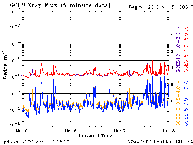 De operationele data in de bovenstaande grafiek werd aangepast om de schaalfactor te verwijderen die werd toegepast door het Space Weather Prediction Center (SWPC). Vanwege de SWPC-schaalfactor in de operationele data werden de zonnevlammen 42% kleiner gerapporteerd dan deze in de wetenschappelijke data. De schaalfactor werd ook verwijderd uit de lijst met zonnevlammen om de werkelijke fysieke eenheden weer te geven.