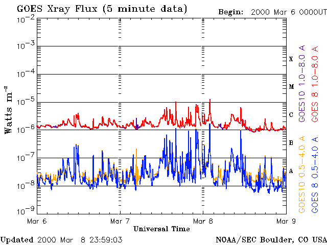 De operationele data in de bovenstaande grafiek werd aangepast om de schaalfactor te verwijderen die werd toegepast door het Space Weather Prediction Center (SWPC). Vanwege de SWPC-schaalfactor in de operationele data werden de zonnevlammen 42% kleiner gerapporteerd dan deze in de wetenschappelijke data. De schaalfactor werd ook verwijderd uit de lijst met zonnevlammen om de werkelijke fysieke eenheden weer te geven.
