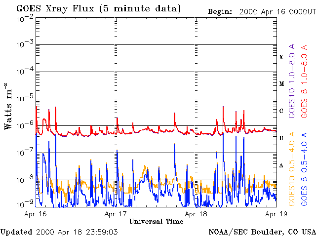 De operationele data in de bovenstaande grafiek werd aangepast om de schaalfactor te verwijderen die werd toegepast door het Space Weather Prediction Center (SWPC). Vanwege de SWPC-schaalfactor in de operationele data werden de zonnevlammen 42% kleiner gerapporteerd dan deze in de wetenschappelijke data. De schaalfactor werd ook verwijderd uit de lijst met zonnevlammen om de werkelijke fysieke eenheden weer te geven.
