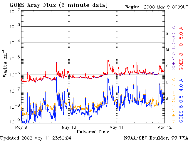 De operationele data in de bovenstaande grafiek werd aangepast om de schaalfactor te verwijderen die werd toegepast door het Space Weather Prediction Center (SWPC). Vanwege de SWPC-schaalfactor in de operationele data werden de zonnevlammen 42% kleiner gerapporteerd dan deze in de wetenschappelijke data. De schaalfactor werd ook verwijderd uit de lijst met zonnevlammen om de werkelijke fysieke eenheden weer te geven.