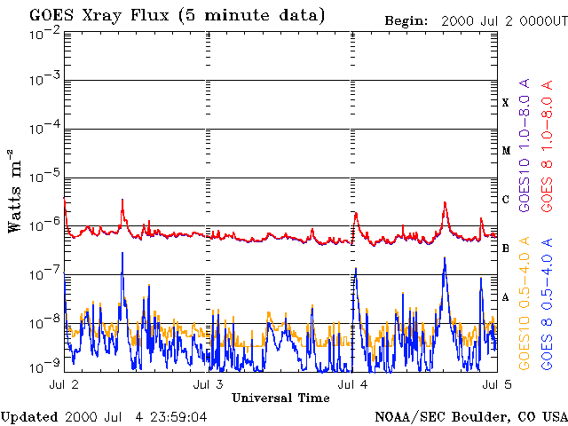 De operationele data in de bovenstaande grafiek werd aangepast om de schaalfactor te verwijderen die werd toegepast door het Space Weather Prediction Center (SWPC). Vanwege de SWPC-schaalfactor in de operationele data werden de zonnevlammen 42% kleiner gerapporteerd dan deze in de wetenschappelijke data. De schaalfactor werd ook verwijderd uit de lijst met zonnevlammen om de werkelijke fysieke eenheden weer te geven.