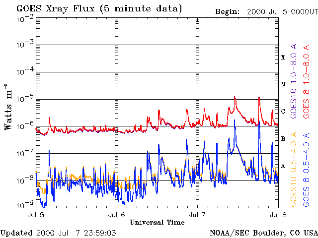 De operationele data in de bovenstaande grafiek werd aangepast om de schaalfactor te verwijderen die werd toegepast door het Space Weather Prediction Center (SWPC). Vanwege de SWPC-schaalfactor in de operationele data werden de zonnevlammen 42% kleiner gerapporteerd dan deze in de wetenschappelijke data. De schaalfactor werd ook verwijderd uit de lijst met zonnevlammen om de werkelijke fysieke eenheden weer te geven.