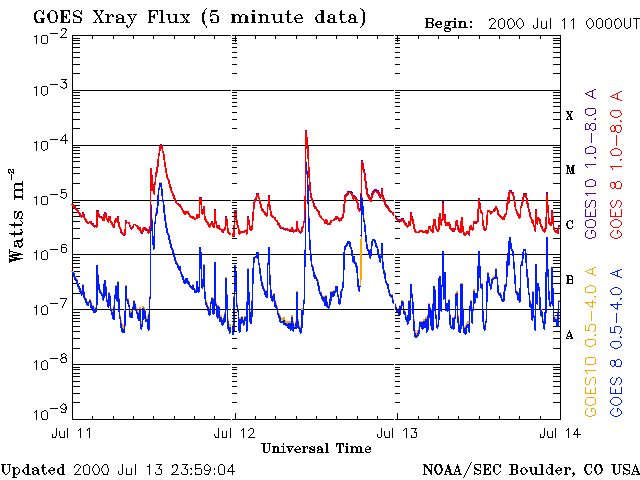 De operationele data in de bovenstaande grafiek werd aangepast om de schaalfactor te verwijderen die werd toegepast door het Space Weather Prediction Center (SWPC). Vanwege de SWPC-schaalfactor in de operationele data werden de zonnevlammen 42% kleiner gerapporteerd dan deze in de wetenschappelijke data. De schaalfactor werd ook verwijderd uit de lijst met zonnevlammen om de werkelijke fysieke eenheden weer te geven.