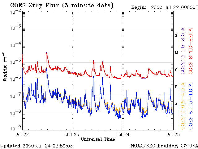 De operationele data in de bovenstaande grafiek werd aangepast om de schaalfactor te verwijderen die werd toegepast door het Space Weather Prediction Center (SWPC). Vanwege de SWPC-schaalfactor in de operationele data werden de zonnevlammen 42% kleiner gerapporteerd dan deze in de wetenschappelijke data. De schaalfactor werd ook verwijderd uit de lijst met zonnevlammen om de werkelijke fysieke eenheden weer te geven.