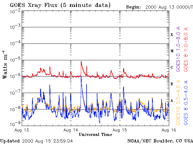 De operationele data in de bovenstaande grafiek werd aangepast om de schaalfactor te verwijderen die werd toegepast door het Space Weather Prediction Center (SWPC). Vanwege de SWPC-schaalfactor in de operationele data werden de zonnevlammen 42% kleiner gerapporteerd dan deze in de wetenschappelijke data. De schaalfactor werd ook verwijderd uit de lijst met zonnevlammen om de werkelijke fysieke eenheden weer te geven.