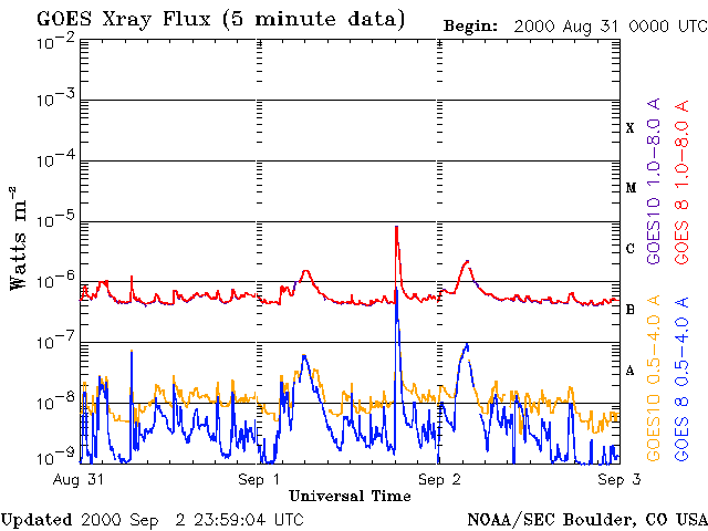 De operationele data in de bovenstaande grafiek werd aangepast om de schaalfactor te verwijderen die werd toegepast door het Space Weather Prediction Center (SWPC). Vanwege de SWPC-schaalfactor in de operationele data werden de zonnevlammen 42% kleiner gerapporteerd dan deze in de wetenschappelijke data. De schaalfactor werd ook verwijderd uit de lijst met zonnevlammen om de werkelijke fysieke eenheden weer te geven.