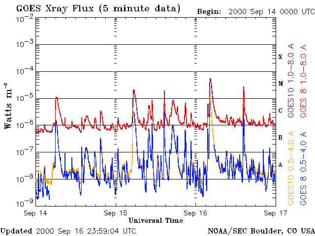 De operationele data in de bovenstaande grafiek werd aangepast om de schaalfactor te verwijderen die werd toegepast door het Space Weather Prediction Center (SWPC). Vanwege de SWPC-schaalfactor in de operationele data werden de zonnevlammen 42% kleiner gerapporteerd dan deze in de wetenschappelijke data. De schaalfactor werd ook verwijderd uit de lijst met zonnevlammen om de werkelijke fysieke eenheden weer te geven.