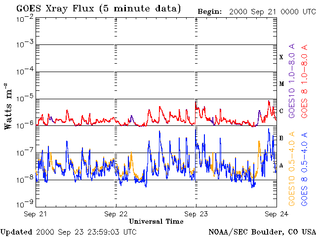 De operationele data in de bovenstaande grafiek werd aangepast om de schaalfactor te verwijderen die werd toegepast door het Space Weather Prediction Center (SWPC). Vanwege de SWPC-schaalfactor in de operationele data werden de zonnevlammen 42% kleiner gerapporteerd dan deze in de wetenschappelijke data. De schaalfactor werd ook verwijderd uit de lijst met zonnevlammen om de werkelijke fysieke eenheden weer te geven.