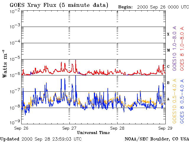 De operationele data in de bovenstaande grafiek werd aangepast om de schaalfactor te verwijderen die werd toegepast door het Space Weather Prediction Center (SWPC). Vanwege de SWPC-schaalfactor in de operationele data werden de zonnevlammen 42% kleiner gerapporteerd dan deze in de wetenschappelijke data. De schaalfactor werd ook verwijderd uit de lijst met zonnevlammen om de werkelijke fysieke eenheden weer te geven.