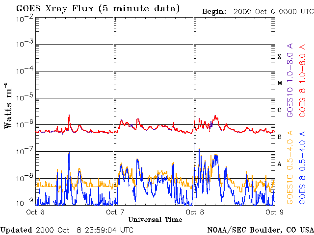 De operationele data in de bovenstaande grafiek werd aangepast om de schaalfactor te verwijderen die werd toegepast door het Space Weather Prediction Center (SWPC). Vanwege de SWPC-schaalfactor in de operationele data werden de zonnevlammen 42% kleiner gerapporteerd dan deze in de wetenschappelijke data. De schaalfactor werd ook verwijderd uit de lijst met zonnevlammen om de werkelijke fysieke eenheden weer te geven.