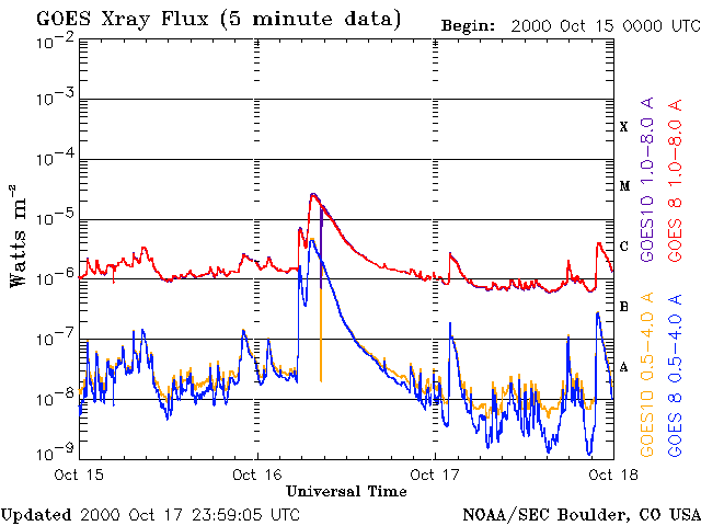 De operationele data in de bovenstaande grafiek werd aangepast om de schaalfactor te verwijderen die werd toegepast door het Space Weather Prediction Center (SWPC). Vanwege de SWPC-schaalfactor in de operationele data werden de zonnevlammen 42% kleiner gerapporteerd dan deze in de wetenschappelijke data. De schaalfactor werd ook verwijderd uit de lijst met zonnevlammen om de werkelijke fysieke eenheden weer te geven.