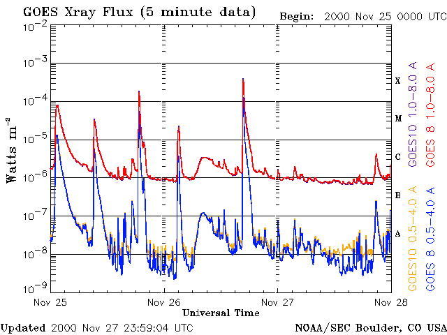 De operationele data in de bovenstaande grafiek werd aangepast om de schaalfactor te verwijderen die werd toegepast door het Space Weather Prediction Center (SWPC). Vanwege de SWPC-schaalfactor in de operationele data werden de zonnevlammen 42% kleiner gerapporteerd dan deze in de wetenschappelijke data. De schaalfactor werd ook verwijderd uit de lijst met zonnevlammen om de werkelijke fysieke eenheden weer te geven.