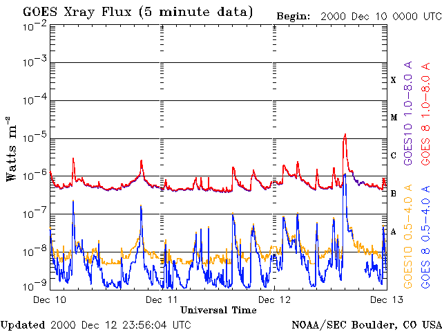 De operationele data in de bovenstaande grafiek werd aangepast om de schaalfactor te verwijderen die werd toegepast door het Space Weather Prediction Center (SWPC). Vanwege de SWPC-schaalfactor in de operationele data werden de zonnevlammen 42% kleiner gerapporteerd dan deze in de wetenschappelijke data. De schaalfactor werd ook verwijderd uit de lijst met zonnevlammen om de werkelijke fysieke eenheden weer te geven.