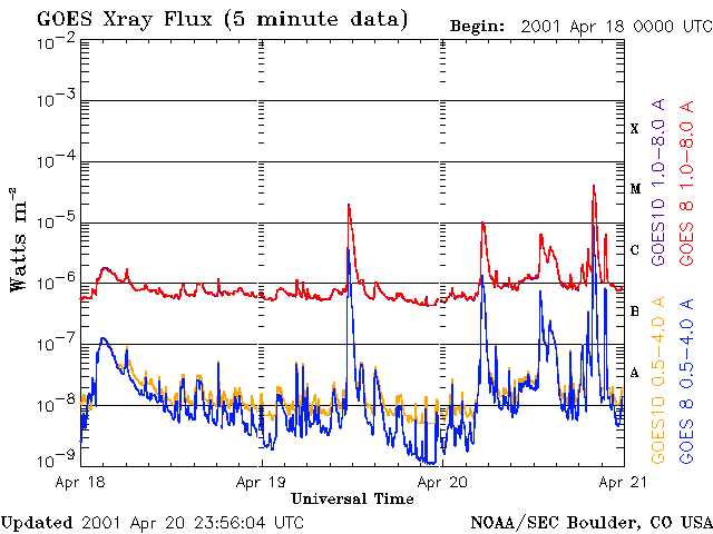 De operationele data in de bovenstaande grafiek werd aangepast om de schaalfactor te verwijderen die werd toegepast door het Space Weather Prediction Center (SWPC). Vanwege de SWPC-schaalfactor in de operationele data werden de zonnevlammen 42% kleiner gerapporteerd dan deze in de wetenschappelijke data. De schaalfactor werd ook verwijderd uit de lijst met zonnevlammen om de werkelijke fysieke eenheden weer te geven.