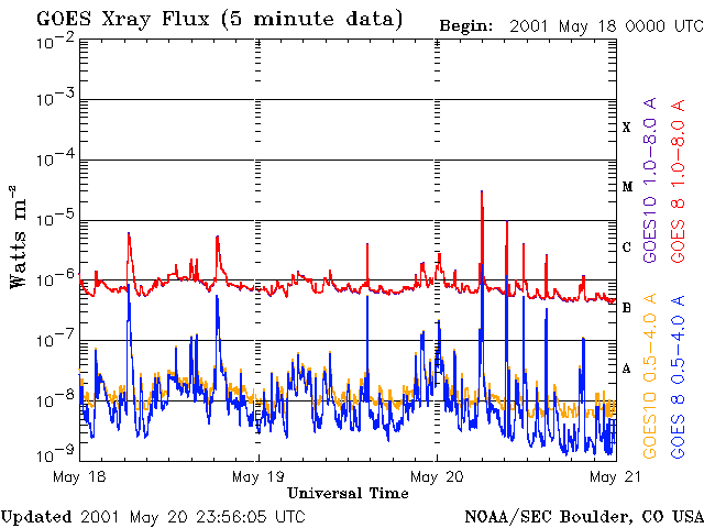 De operationele data in de bovenstaande grafiek werd aangepast om de schaalfactor te verwijderen die werd toegepast door het Space Weather Prediction Center (SWPC). Vanwege de SWPC-schaalfactor in de operationele data werden de zonnevlammen 42% kleiner gerapporteerd dan deze in de wetenschappelijke data. De schaalfactor werd ook verwijderd uit de lijst met zonnevlammen om de werkelijke fysieke eenheden weer te geven.