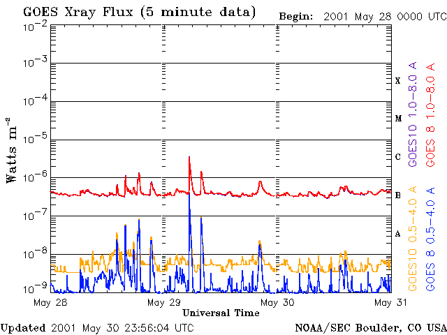De operationele data in de bovenstaande grafiek werd aangepast om de schaalfactor te verwijderen die werd toegepast door het Space Weather Prediction Center (SWPC). Vanwege de SWPC-schaalfactor in de operationele data werden de zonnevlammen 42% kleiner gerapporteerd dan deze in de wetenschappelijke data. De schaalfactor werd ook verwijderd uit de lijst met zonnevlammen om de werkelijke fysieke eenheden weer te geven.