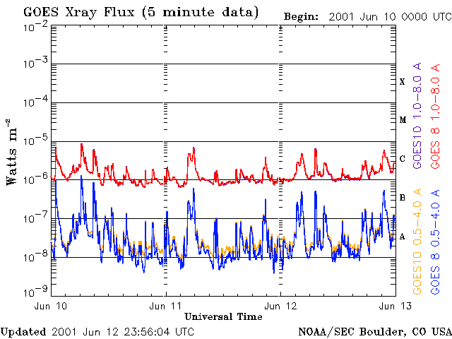 De operationele data in de bovenstaande grafiek werd aangepast om de schaalfactor te verwijderen die werd toegepast door het Space Weather Prediction Center (SWPC). Vanwege de SWPC-schaalfactor in de operationele data werden de zonnevlammen 42% kleiner gerapporteerd dan deze in de wetenschappelijke data. De schaalfactor werd ook verwijderd uit de lijst met zonnevlammen om de werkelijke fysieke eenheden weer te geven.