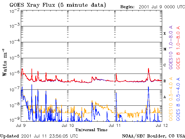 De operationele data in de bovenstaande grafiek werd aangepast om de schaalfactor te verwijderen die werd toegepast door het Space Weather Prediction Center (SWPC). Vanwege de SWPC-schaalfactor in de operationele data werden de zonnevlammen 42% kleiner gerapporteerd dan deze in de wetenschappelijke data. De schaalfactor werd ook verwijderd uit de lijst met zonnevlammen om de werkelijke fysieke eenheden weer te geven.