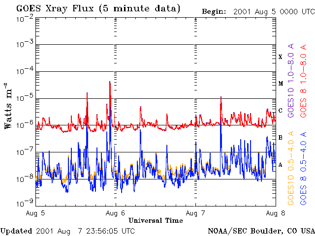 De operationele data in de bovenstaande grafiek werd aangepast om de schaalfactor te verwijderen die werd toegepast door het Space Weather Prediction Center (SWPC). Vanwege de SWPC-schaalfactor in de operationele data werden de zonnevlammen 42% kleiner gerapporteerd dan deze in de wetenschappelijke data. De schaalfactor werd ook verwijderd uit de lijst met zonnevlammen om de werkelijke fysieke eenheden weer te geven.