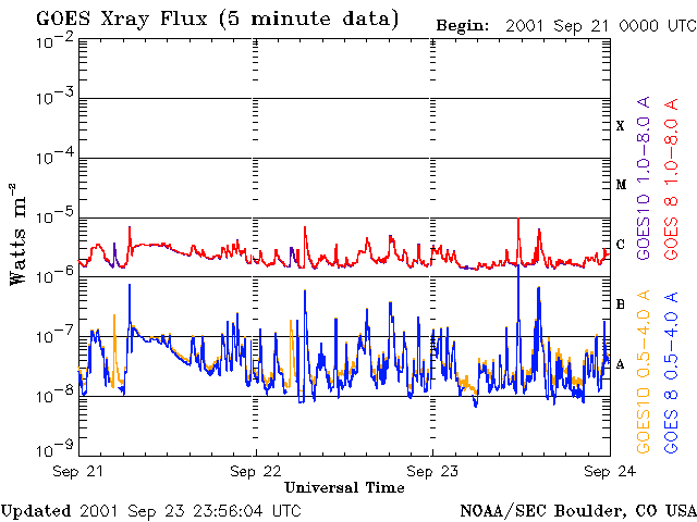 De operationele data in de bovenstaande grafiek werd aangepast om de schaalfactor te verwijderen die werd toegepast door het Space Weather Prediction Center (SWPC). Vanwege de SWPC-schaalfactor in de operationele data werden de zonnevlammen 42% kleiner gerapporteerd dan deze in de wetenschappelijke data. De schaalfactor werd ook verwijderd uit de lijst met zonnevlammen om de werkelijke fysieke eenheden weer te geven.