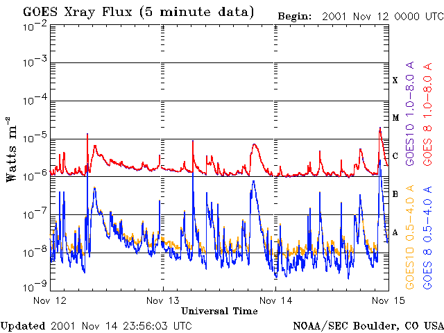 De operationele data in de bovenstaande grafiek werd aangepast om de schaalfactor te verwijderen die werd toegepast door het Space Weather Prediction Center (SWPC). Vanwege de SWPC-schaalfactor in de operationele data werden de zonnevlammen 42% kleiner gerapporteerd dan deze in de wetenschappelijke data. De schaalfactor werd ook verwijderd uit de lijst met zonnevlammen om de werkelijke fysieke eenheden weer te geven.