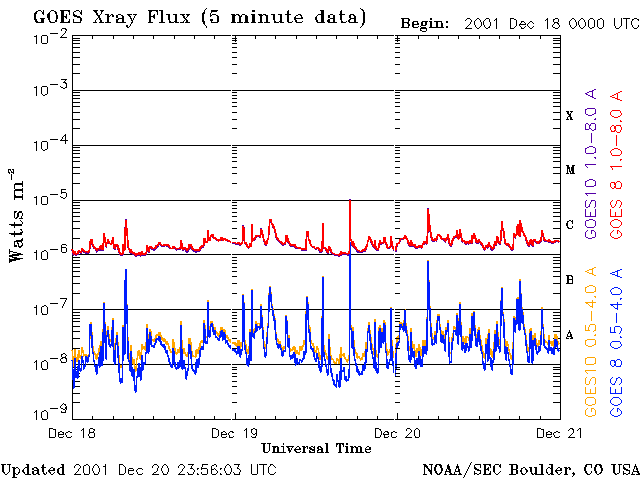 De operationele data in de bovenstaande grafiek werd aangepast om de schaalfactor te verwijderen die werd toegepast door het Space Weather Prediction Center (SWPC). Vanwege de SWPC-schaalfactor in de operationele data werden de zonnevlammen 42% kleiner gerapporteerd dan deze in de wetenschappelijke data. De schaalfactor werd ook verwijderd uit de lijst met zonnevlammen om de werkelijke fysieke eenheden weer te geven.