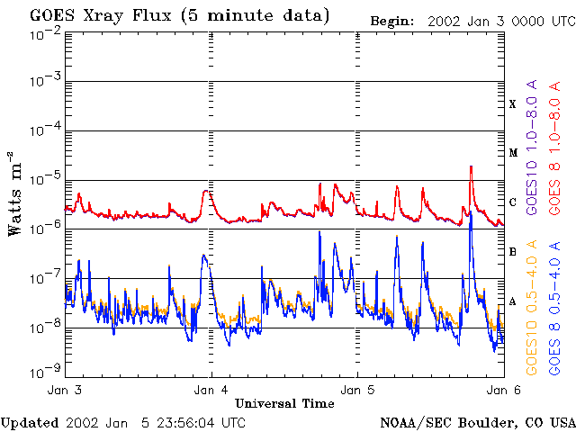 De operationele data in de bovenstaande grafiek werd aangepast om de schaalfactor te verwijderen die werd toegepast door het Space Weather Prediction Center (SWPC). Vanwege de SWPC-schaalfactor in de operationele data werden de zonnevlammen 42% kleiner gerapporteerd dan deze in de wetenschappelijke data. De schaalfactor werd ook verwijderd uit de lijst met zonnevlammen om de werkelijke fysieke eenheden weer te geven.