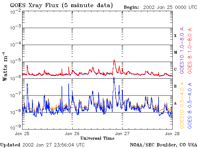 De operationele data in de bovenstaande grafiek werd aangepast om de schaalfactor te verwijderen die werd toegepast door het Space Weather Prediction Center (SWPC). Vanwege de SWPC-schaalfactor in de operationele data werden de zonnevlammen 42% kleiner gerapporteerd dan deze in de wetenschappelijke data. De schaalfactor werd ook verwijderd uit de lijst met zonnevlammen om de werkelijke fysieke eenheden weer te geven.