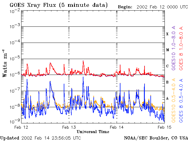 De operationele data in de bovenstaande grafiek werd aangepast om de schaalfactor te verwijderen die werd toegepast door het Space Weather Prediction Center (SWPC). Vanwege de SWPC-schaalfactor in de operationele data werden de zonnevlammen 42% kleiner gerapporteerd dan deze in de wetenschappelijke data. De schaalfactor werd ook verwijderd uit de lijst met zonnevlammen om de werkelijke fysieke eenheden weer te geven.