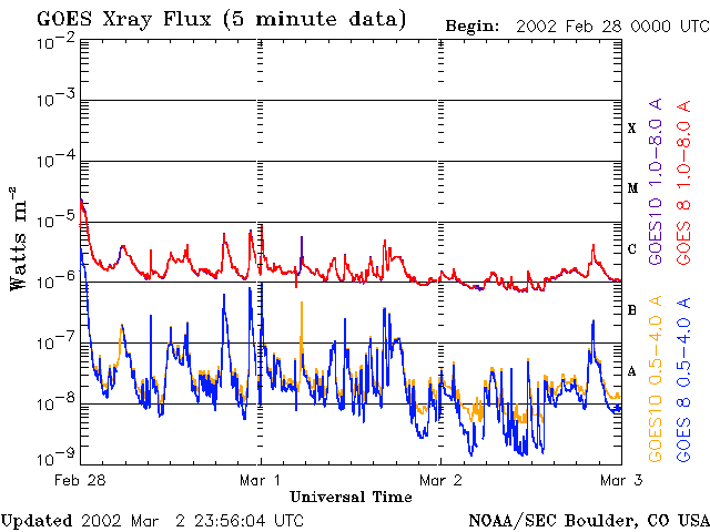 De operationele data in de bovenstaande grafiek werd aangepast om de schaalfactor te verwijderen die werd toegepast door het Space Weather Prediction Center (SWPC). Vanwege de SWPC-schaalfactor in de operationele data werden de zonnevlammen 42% kleiner gerapporteerd dan deze in de wetenschappelijke data. De schaalfactor werd ook verwijderd uit de lijst met zonnevlammen om de werkelijke fysieke eenheden weer te geven.