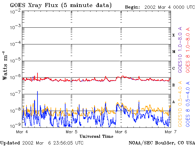 De operationele data in de bovenstaande grafiek werd aangepast om de schaalfactor te verwijderen die werd toegepast door het Space Weather Prediction Center (SWPC). Vanwege de SWPC-schaalfactor in de operationele data werden de zonnevlammen 42% kleiner gerapporteerd dan deze in de wetenschappelijke data. De schaalfactor werd ook verwijderd uit de lijst met zonnevlammen om de werkelijke fysieke eenheden weer te geven.