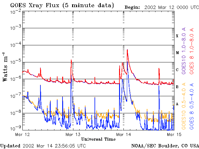 De operationele data in de bovenstaande grafiek werd aangepast om de schaalfactor te verwijderen die werd toegepast door het Space Weather Prediction Center (SWPC). Vanwege de SWPC-schaalfactor in de operationele data werden de zonnevlammen 42% kleiner gerapporteerd dan deze in de wetenschappelijke data. De schaalfactor werd ook verwijderd uit de lijst met zonnevlammen om de werkelijke fysieke eenheden weer te geven.