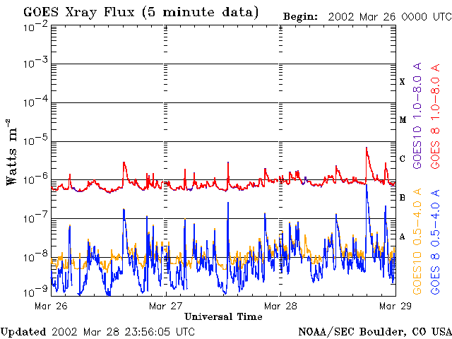 De operationele data in de bovenstaande grafiek werd aangepast om de schaalfactor te verwijderen die werd toegepast door het Space Weather Prediction Center (SWPC). Vanwege de SWPC-schaalfactor in de operationele data werden de zonnevlammen 42% kleiner gerapporteerd dan deze in de wetenschappelijke data. De schaalfactor werd ook verwijderd uit de lijst met zonnevlammen om de werkelijke fysieke eenheden weer te geven.