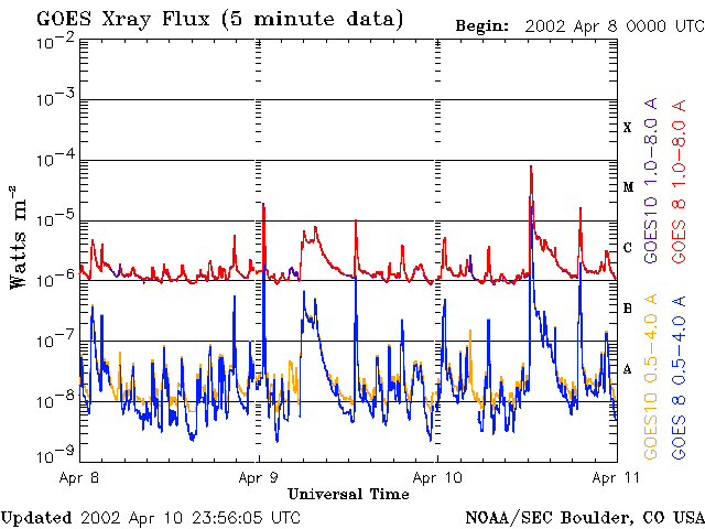 De operationele data in de bovenstaande grafiek werd aangepast om de schaalfactor te verwijderen die werd toegepast door het Space Weather Prediction Center (SWPC). Vanwege de SWPC-schaalfactor in de operationele data werden de zonnevlammen 42% kleiner gerapporteerd dan deze in de wetenschappelijke data. De schaalfactor werd ook verwijderd uit de lijst met zonnevlammen om de werkelijke fysieke eenheden weer te geven.