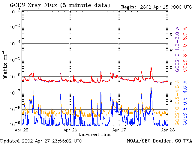 De operationele data in de bovenstaande grafiek werd aangepast om de schaalfactor te verwijderen die werd toegepast door het Space Weather Prediction Center (SWPC). Vanwege de SWPC-schaalfactor in de operationele data werden de zonnevlammen 42% kleiner gerapporteerd dan deze in de wetenschappelijke data. De schaalfactor werd ook verwijderd uit de lijst met zonnevlammen om de werkelijke fysieke eenheden weer te geven.