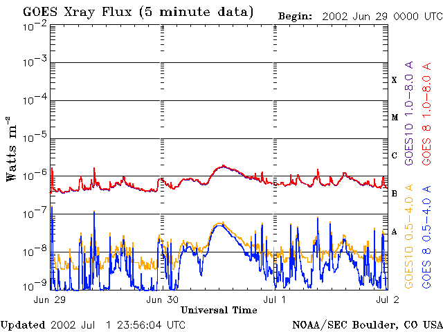 De operationele data in de bovenstaande grafiek werd aangepast om de schaalfactor te verwijderen die werd toegepast door het Space Weather Prediction Center (SWPC). Vanwege de SWPC-schaalfactor in de operationele data werden de zonnevlammen 42% kleiner gerapporteerd dan deze in de wetenschappelijke data. De schaalfactor werd ook verwijderd uit de lijst met zonnevlammen om de werkelijke fysieke eenheden weer te geven.