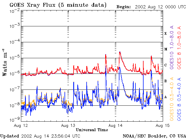 De operationele data in de bovenstaande grafiek werd aangepast om de schaalfactor te verwijderen die werd toegepast door het Space Weather Prediction Center (SWPC). Vanwege de SWPC-schaalfactor in de operationele data werden de zonnevlammen 42% kleiner gerapporteerd dan deze in de wetenschappelijke data. De schaalfactor werd ook verwijderd uit de lijst met zonnevlammen om de werkelijke fysieke eenheden weer te geven.